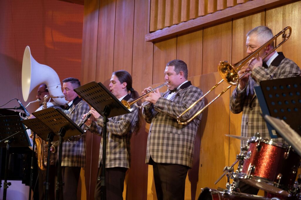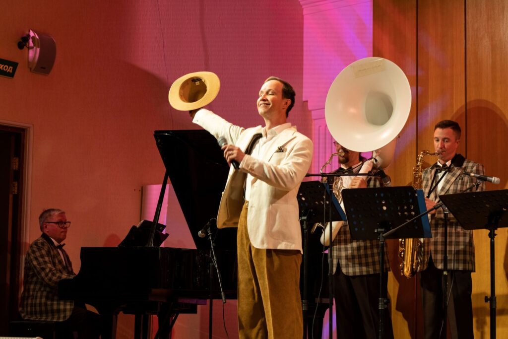 Гости из Самары наполнили зал ретро-флëром, музыкальным блеском, искренними улыбками и виртуозной игрой. Вокалисту Евгению Юракову досталась роль ведущего, рассказчика и исполнителя хитов Утёсова. Обладая вовсе не утëсовской, а очень индивидуальной притягательностью, артист точно попадал в тембр певца и в русле современных течений интерактивно общался с залом.