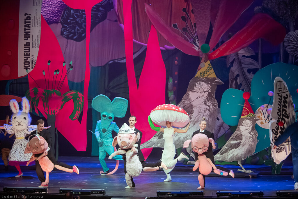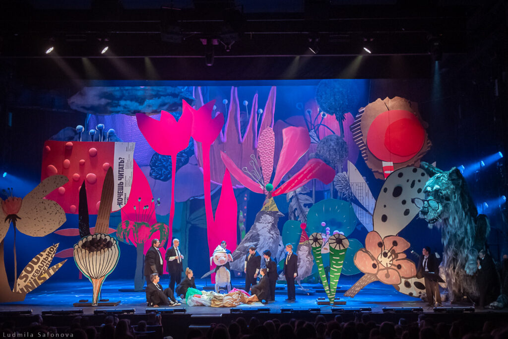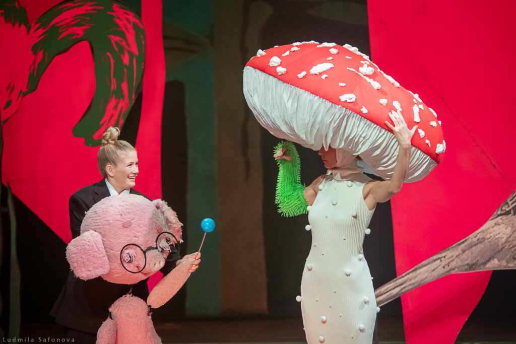 Художник спектакля Мария Трегубова создала мир, в который хочется попасть даже взрослому. Всё здесь будто сделано из фантазии, цвета и света: огромные куклы, мягкие декорации, стены, которые двигаются и поют, и невероятные костюмы: где-то напоминающие цирк, где-то – комикс. Мир спектакля словно соткан из детских рисунков, оживших на сцене, и каждое появление каждого персонажа – отдельный маленький праздник.