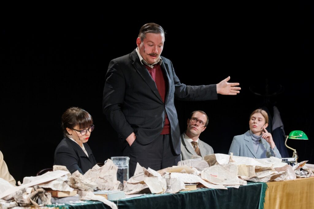 Актёрский ансамбль спектакля поражает слаженностью. Каждый артист исполняет несколько ролей, меняясь прямо на глазах у публики. Анна Лобоцкая, лишь надев парик, мгновенно превращается из мягкого, внимательного адвоката в истеричную свидетельницу Ромашову, когда-то давшую показания против поэта, даже не будучи с ним знакомой. Эти мгновенные перевоплощения придают действию особую энергию – как будто сцена сама дышит вместе с актёрами.