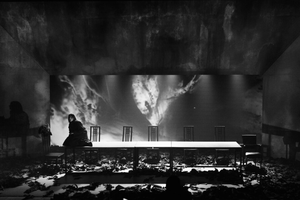 И здесь мы позволим себе небольшой спойлер, процитировав Сергея Эфрона о том, что Марина — «человек страстей», «чей воздух — отдаваться с головой урагану», и «громадная печь, которой необходимы дрова». Сценическое пространство оказывается внутренностью огромной печки, где среди углей и золы живёт одинокая поэтическая душа, которая одна в огне не сгорает, а закаляется.