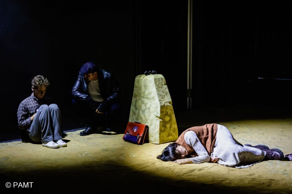 Режиссер Юрий Печенежский помещает актеров и зрителей в простой замкнутый мир. У Айтматова трагическое предательство человеком природы и самого себя происходит на кордоне, затерянном в лесах Киргизии. Премьера РАМТа идет на маленькой полупустой сцене Черной комнаты. Из декораций – только массивные камни и песок. Из реквизита – несколько мисок и деревянных стульев, школьный портфель, старый бинокль, оленьи рога. На серых стенах изредка проступают наскальные рисунки или мелькает далекий, почти призрачный белый пароход.