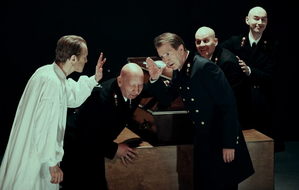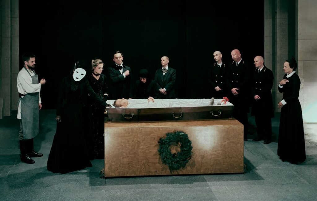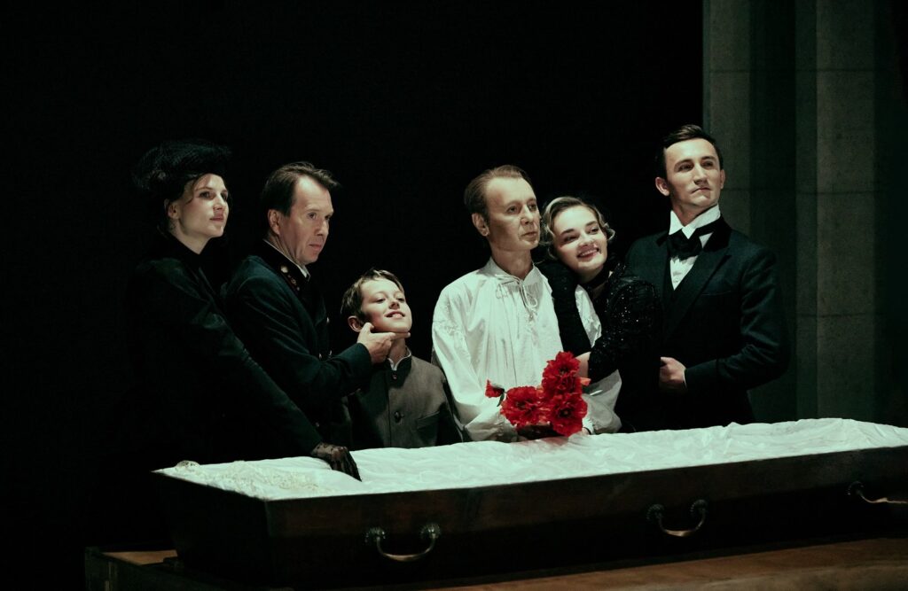 Автоматическими кажутся действия всех присутствующих на похоронах: захлебываясь рыдает Прасковья Федоровна (Марьяна Спивак), коллеги по работе (Кирилл Быркин, Антон Ескин, Владимир Белостоцкий) пытаются соблюсти этикет и изобразить на лицах сочувствие, дочь Лиза (Глафира Лебедева) растерянна. Комично выглядят Священник (Кирилл Шварценберг) и Доктор (Авангард Леонтьев), для которых смерть предстаёт чем-то естественно-правильным, а значит и встречать её нужно, кивая тяжелыми головами. Что-то готическое ощущается в статуарных фигурах в строгих черных платьях и костюмах, в сдержанных мужских жестах и дамских заломленных позах. Мир вокруг гроба живёт как один слаженный механизм, из которого выпала одна маленькая деталь – Иван Ильич. Но его скоро заменят на работе, жена снова выйдет замуж, а маленький сын с трудом вспомнит черты отцовского лица.
