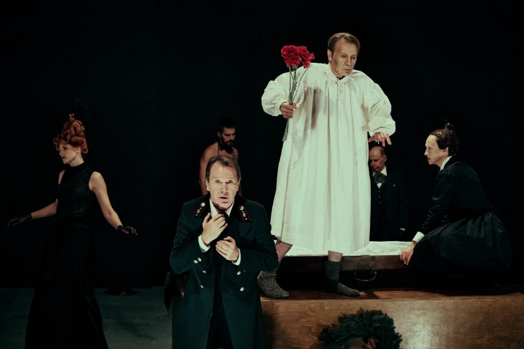 На Малой сцене Театра Наций – спектакль «Обыкновенная смерть» по мотивам повести Льва Толстого «Смерть Ивана Ильича», главную роль в котором исполняет Евгений Миронов. Описание болезни и смерти судейского чиновника Ивана Головина рассказана режиссером Валерием Фокиным, с одной стороны, камерно и психологически подробно, с другой – метафорично и объемно. Максимально приближённо следуя сюжету повести (инсценировка Анастасии Букреевой), «Обыкновенная смерть» погружает зрителя в подвалы человеческого осознания своей конечности.