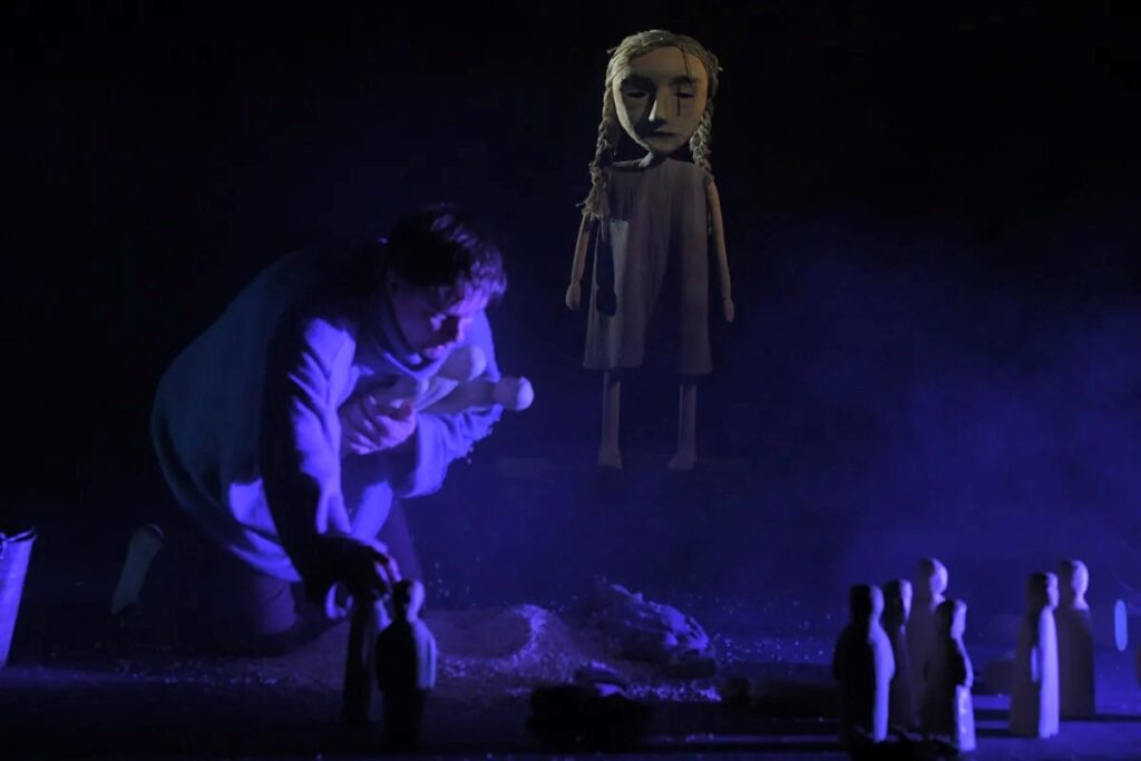В постановке режиссера Никиты Петрищева нет ничего детского – кроме, может быть, тоски по утраченной чистоте, которую герой тщетно ищет в себе и в мире. Театр кукол превращает философский рассказ в спектакль-вертеп, в котором жизнь и сон, мысль и действие, человек и его кукольное отражение сплетаются в неразделимую ткань.