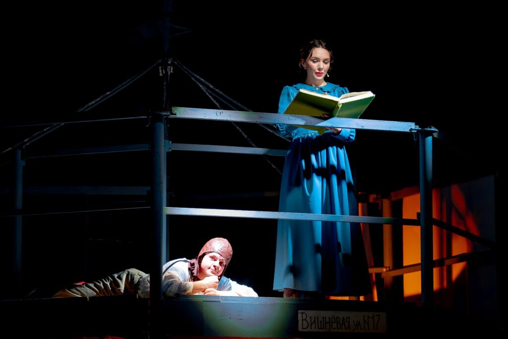 Сцена «живет» и вращается (художник – Мария Клочьева): дом семьи Бэнкс на Вишнёвой улице медленно поворачивается вокруг своей оси, словно сама жизнь семьи – непрерывный круг забот, открытий и любви. Это вращение не просто технический приём, а метафора: карусель, в которую вовлекает своих подопечных Мэри Поппинс, – круг чудес, взросления и преображения. Режиссер по пластике Павел Фролов создаёт такой хореографический рисунок, в котором есть и ритм лондонской улицы, и лёгкость полёта на зонтике, и уверенность шага по облакам. Каждая сцена будто дышит в своём темпе, и кажется, что Мэри Поппинс управляет не только ветром, но и временем.