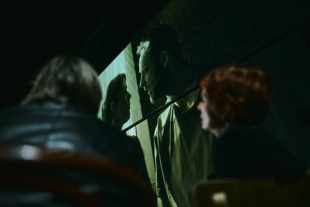 События разворачиваются в лабиринте квартир, на достаточном расстоянии от зрителя. Крупные планы на экране создают эффект отдаления всего происходящего куда-то за границы реальности зрительного зала. Очень верным приёмом становится обыгрывание экрана во втором действии, где он уступает первенство живому плану. На авансцене киновед Серебряков со всей профессорской серьёзностью анализирует зомби-комедию Джима Джармуша «Мёртвые не умирают», а затем на экране застывают обнаженные фигуры Елены Андреевны и Астрова. Отдельно стоит сказать о реакции Дяди Вани – он отпрыгивает от Елены Андреевны, слегка «соприкоснувшись с ней рукавами», как угодивший в осиное гнездо. Никаких слов обличения в её адрес. Только дикий крик тела, ощущающего отвращение к былому объекту любви.