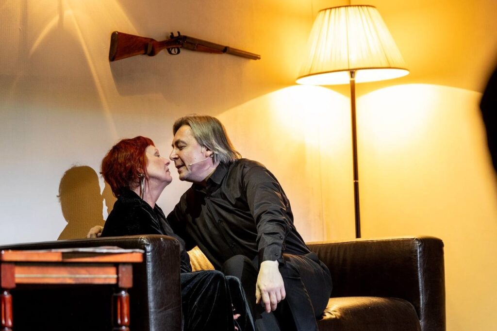 Одной из самых эмоционально напряженных сцен становится монолог Александра Серебрякова. Актёр Игорь Балалаев, полубоком к зрителю, сидит на диване и произносит текст под сопровождение Симфонии Вайнберга. Текст произносится вдумчиво, мягко, аккуратно, будто это не просто слова, а застывшие образы памяти. Игорь Балалаев впускает музыку в тело своего персонажа, врастая вместе с ними в странные смыслы, которые в конечном итоге сводятся к одному: мир не черно-белый – он бесцветный. Рядом с профессором сидит Мария Войницкая (Виктория Верберг). Вдвоём они напоминают затерянных на льдине диких животных, которые смирились со своей неминуемой гибелью. Серебряков будто не замечает любви Войницкой, также, как и Елена Андреевна отказывается верить чувствам Дяди Вани. Его робкие признания, она слушает, взобравшись на холодильник. Никто из них не может принять любовь другого.