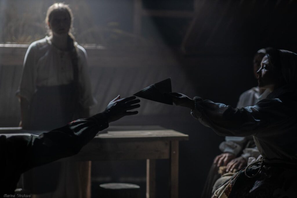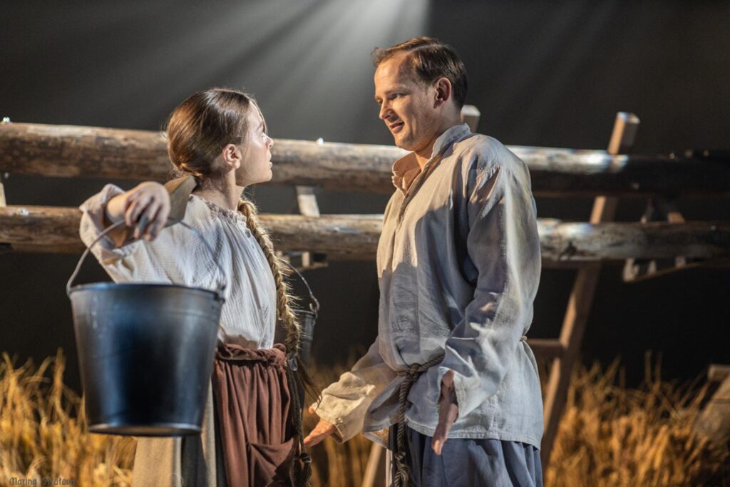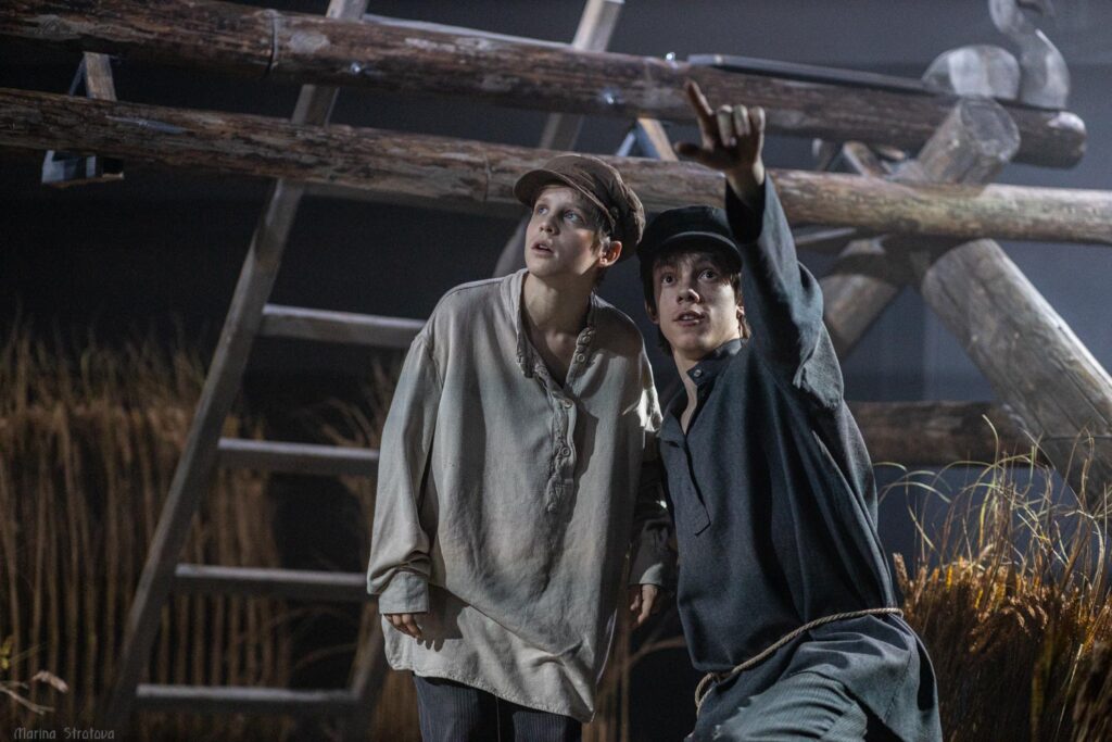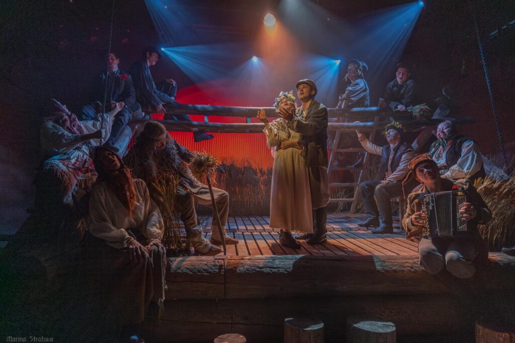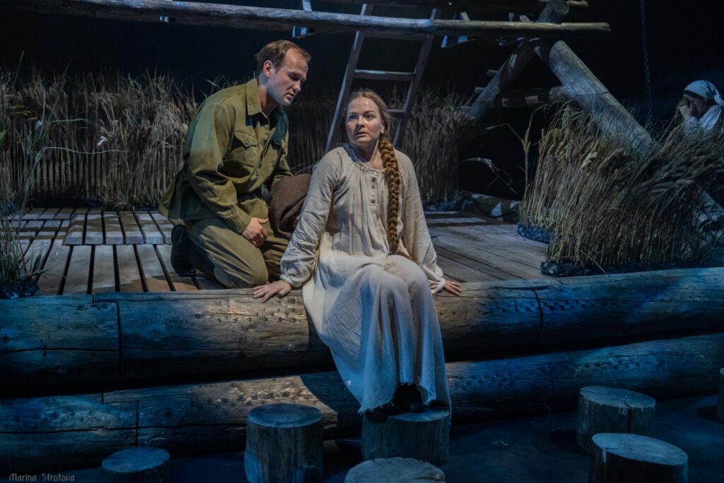Режиссер Денис Рекало находит родственную автору атмосферу, погружая зрителя в предельно условные, но и максимально неподдельные обстоятельства деревенского уклада. В камерном игровом пространстве Малой сцены на Поварской режиссер пробует воссоздать особый образный строй повести, в котором соединены реальность жизни и фантазия, где действуют и корова, и колодец с журавлем, и огородное пугало, наряду с главными персонажами – жителями «счастливой деревни» Полиной и Михеевым.