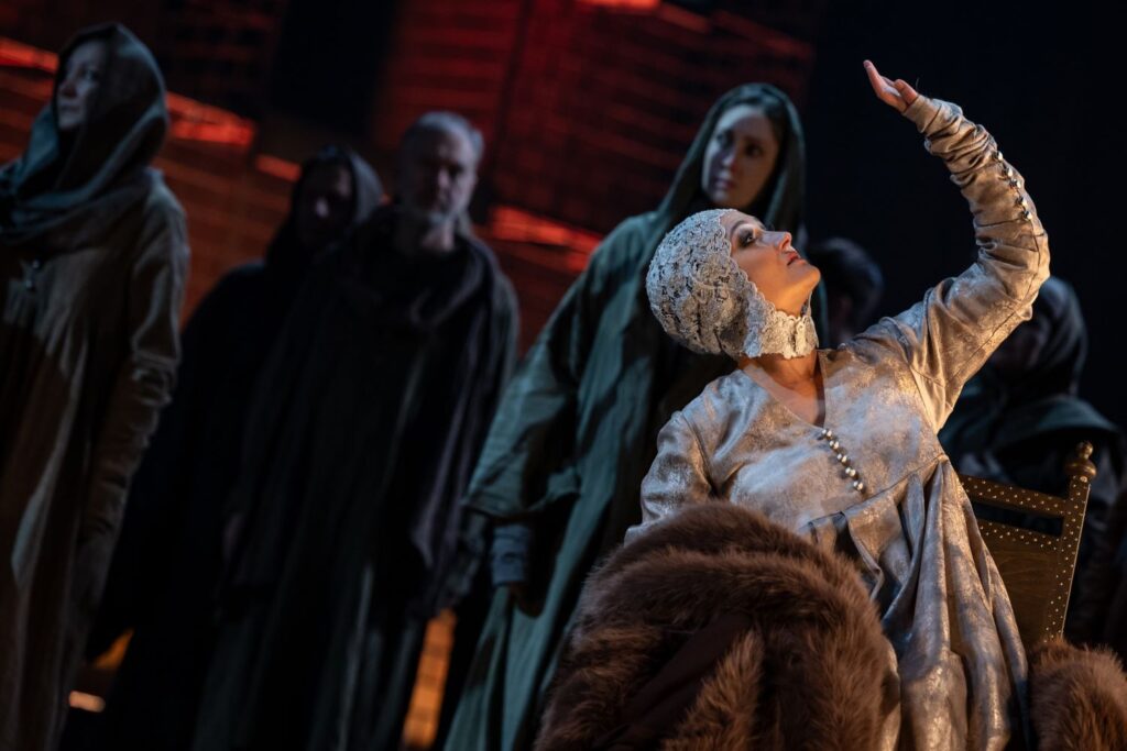 Его антиподы – Григорий Грязной (Ренат Решитов) и Малюта Скуратов (Данил Князев) – задают нерв действию, олицетворяя власть и силу. В роли Любаши блистательно выступает Полина Панина, воплощая безграничное отчаяние своей героини. Роль купца Собакина досталась Виталию Ефанову: он силён по жизни, но бессилен в спасении дочери, и обречён на вечные страдания. Эту невосполнимую утрату, страшную трагедию невозможно было бы прочувствовать без тонкой и точной работы оркестра под руководством Дмитрия Лисса, выкладывавшегося на полную уже с первых нот увертюры.