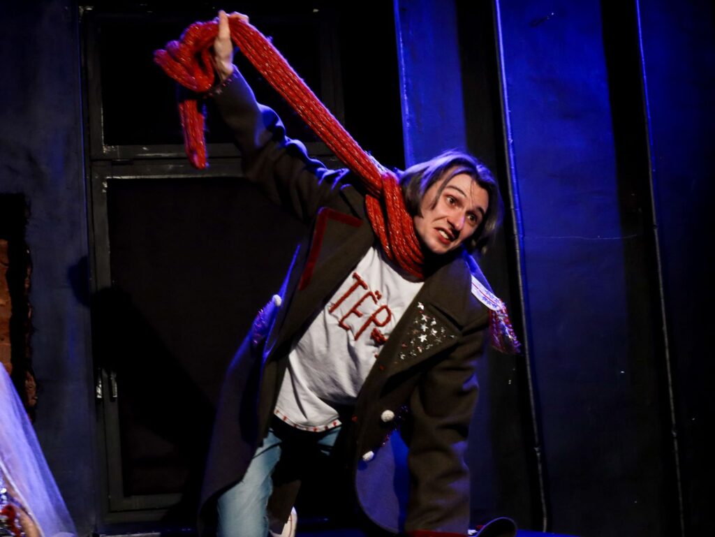 Поначалу казалось, что возведенные в квадрат дворцовые интриги русского (Павел) и датского (Гамлет) дворов не поместятся в черный параллелепипед сцены театра «КУРТ», но понемногу, за счет ритмичного переключения эпизодов, порой очень условных склеек и множественных, открытым приемом проводимых, переоблачений режиссеру удалось включить нас в исторический контекст самой зари XIX века, контекст, припорошенный легким гамлетизмом. Волей-неволей спектакль оформился как представление труппы бродячих актеров, а основной фокус оказался на частых переменах действующих лиц. Признаться, этот парад героев поначалу вызывал легкое головокружение. Так, Роман Вебер был одновременно и попеременно курносым Павлом и длинноносым Гамлетом. Марат Султанов подслушивал в роли вездесущего графа фон Палена и тут же погибал от шпаги уже в качестве Полония. Владимир Овчинников и Расул Минулин то бросали монетку случайности, как персонажи пьесы «Гильдестерн и Розенкранц мертвы», то ставили на кон свою судьбу, как цесаревичи Александр и Константин. Уму непостижимо, как не заблудилась во всех своих женских персонажах выпускница мастерской з.а. М.И. Самочко Александра Колтон. Самой удачной эманацией мне показалась говорящая с легким акцентом соблазнительная Лизхен, супруга наследника – со смелостью Красной шапочки в темном лесу она несла свои баденские пирожки бабушке своего мужа, Екатерине II в исполнении статичной Кати Чин.