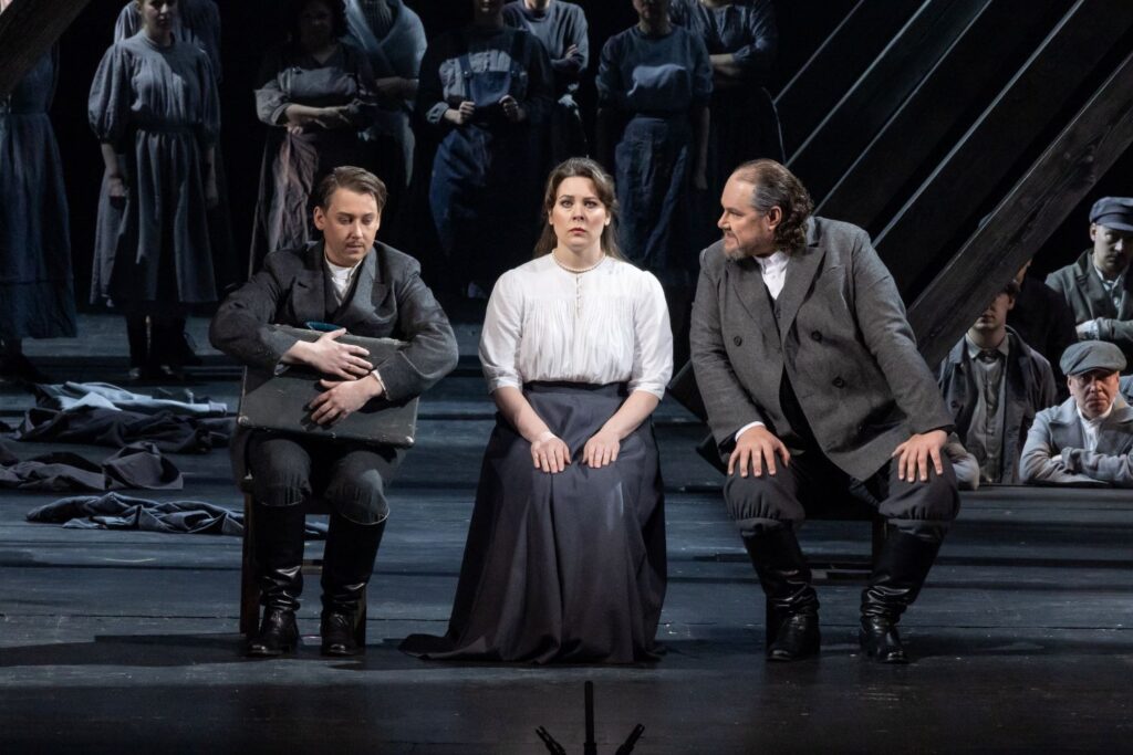 Впрочем, отсутствие ярких красок выводит на первый план музыку. Оркестр под управлением Фёдора Леднева работает слаженно, акцентирует мельчайшие детали музыкальных фрагментов, накаляя атмосферу до предела к кульминации действия. Отдельный подарок зрителям от создателей спектакля – эпизод в первом акте, где оркестровая яма поднимается до уровня сцены, и музыкальный коллектив виртуозно исполняет один из продолжительных отрывков, наполняя зал своей безграничной энергетикой.