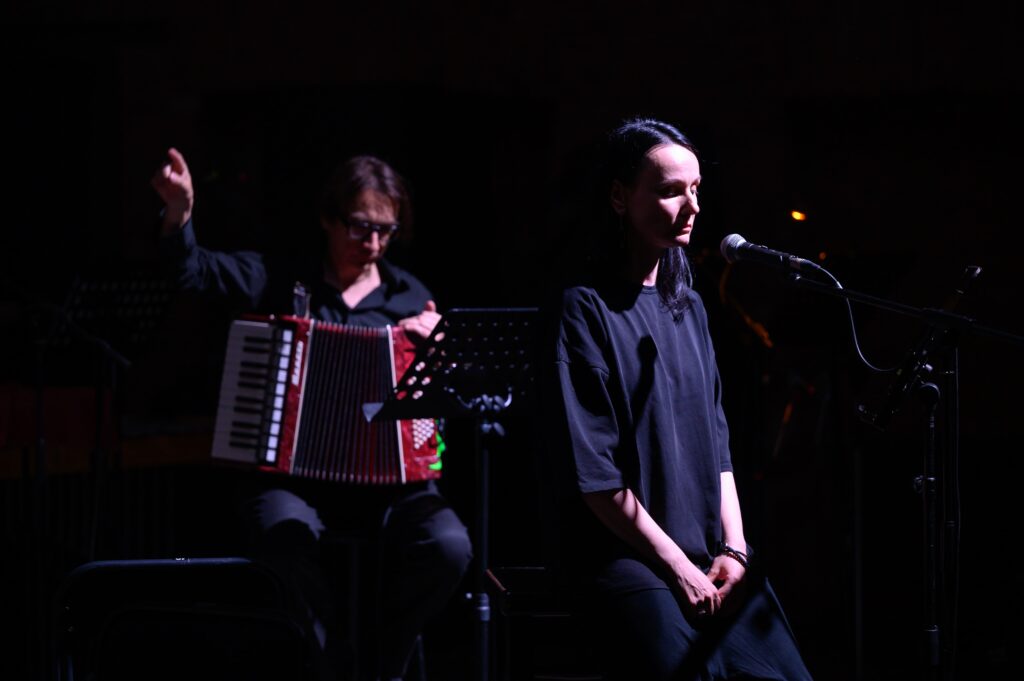 Музыкально-поэтический перформанс, компиляция цитат из стихотворений и писем Марины Цветаевой под Шуберта, Шостаковича, Пярта — человеческое измерение большого поэта, один из ключиков к «Поэме горы», ядру перформативной программы фестиваля. «Объяснение в судьбе» от первого лица «ободранного человека», который чувствовал наотмашь — так, что «слезы больше глаз», и не мог найти спутника равносильного не себе даже, а своей любви. Поэзия вливается в музыку — так, что не разъять иногда, а Александра Листопадова с первого слова попадает в нерв с непривычной для трактовок Цветаевой деловитой интонацией рассудительного ребенка. Она светится в темноте лицом и руками, почти не позволяя себе двигатьсяи кажется гордым огоньком, в котором легко провидеть ревущее пламя.